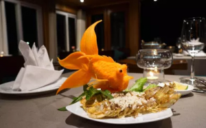 Les créations de notre Chef réjouiront les yeux et les papilles des fins gourmets et amateurs de fruits de mer. Autour d’une table soigneusement dressée, vous passerez un moment des plus joliment goûteux.
