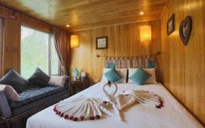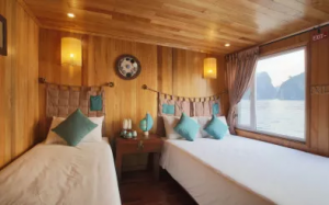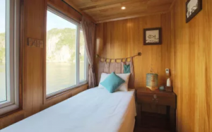 A bord de Secret Halong, tout dans les proportions, les matériaux utilisés, les gestes maîtrisés de l’équipage reflète l’humilité et le respect face à un bijou patrimonial. Légèreté et finesse, tout est à l’image de l’empreinte discrète que tout un chacun devrait laisser de son passage en Baie d’Halong.